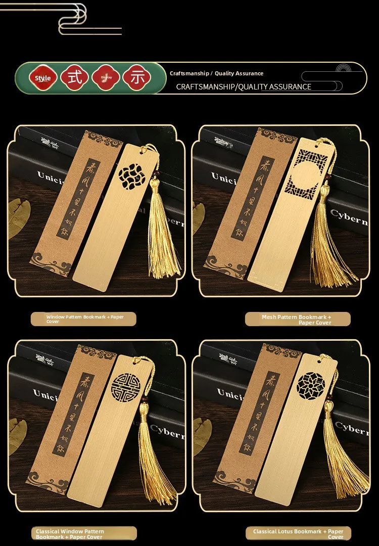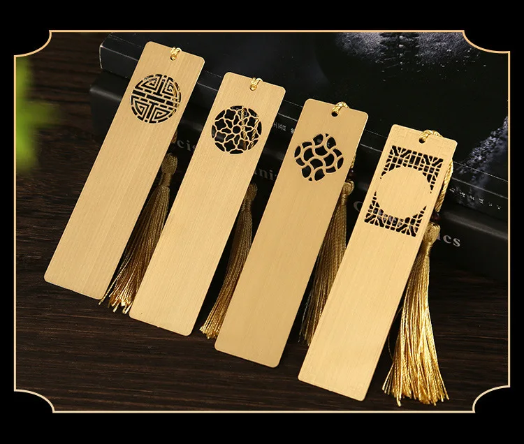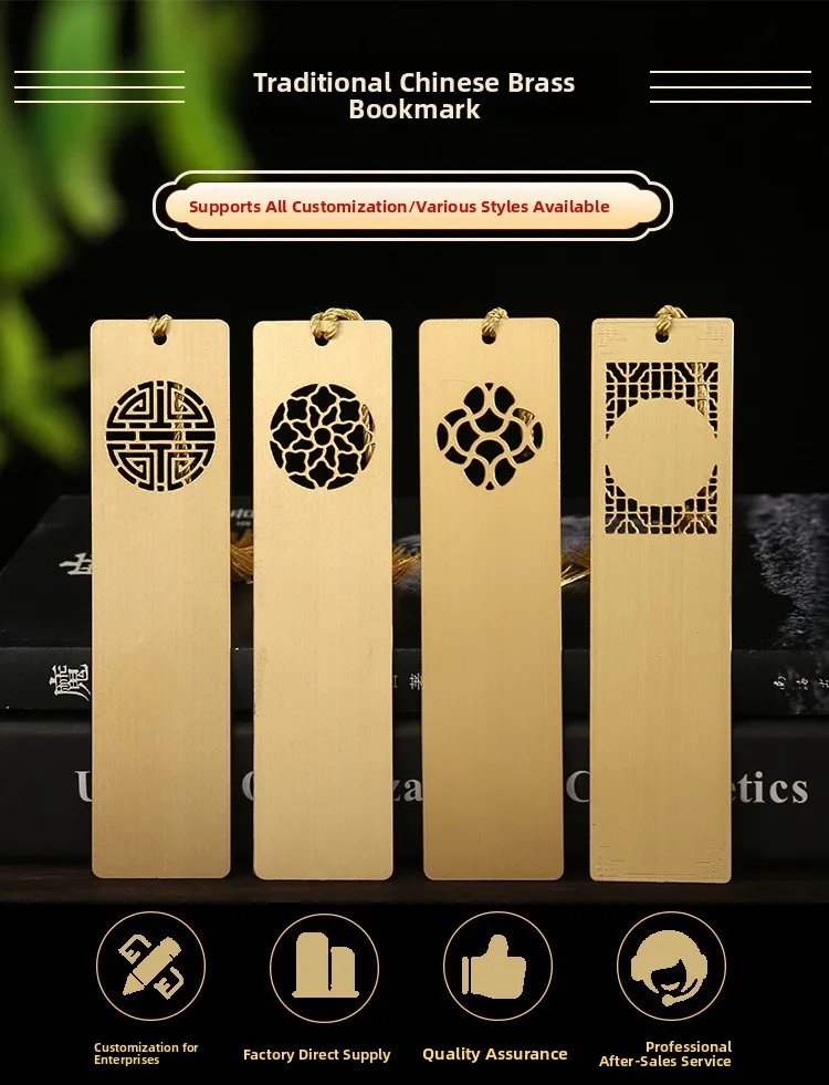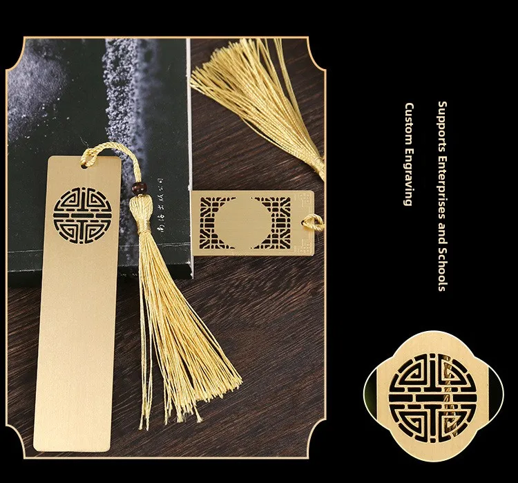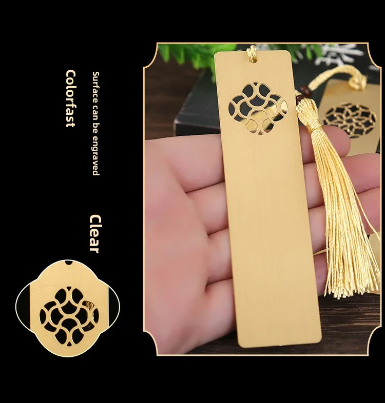 This metal bronze bookmark features a customizable design, allowing you to personalize it with your own logo or text, making it a unique and thoughtful gift.